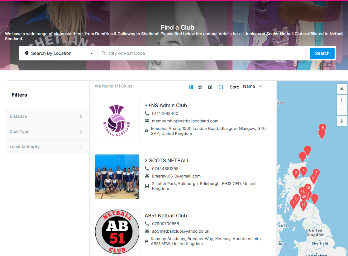 https://www.netballscotland.com/get-involved/club-finder/The Club Finder takes information directly from your club JustGo dashboard; therefore it's very important that this information is kept up to date.