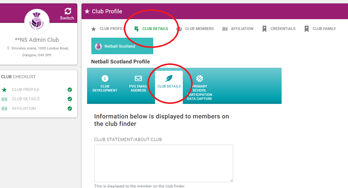 See below for instructions on updating the additional details on your Club Profile.